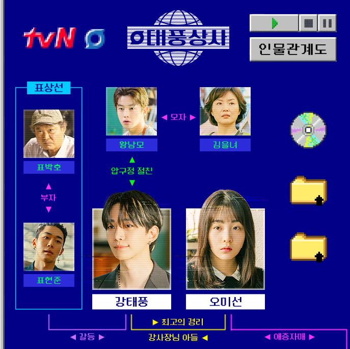 드라마의 인물 관계는 복잡하게 얽혀 있습니다. 강태풍과 오미선의 로맨스는 물론, 강태풍과 그의 아버지 강진영 간의 갈등도 주요 테마 중 하나입니다.